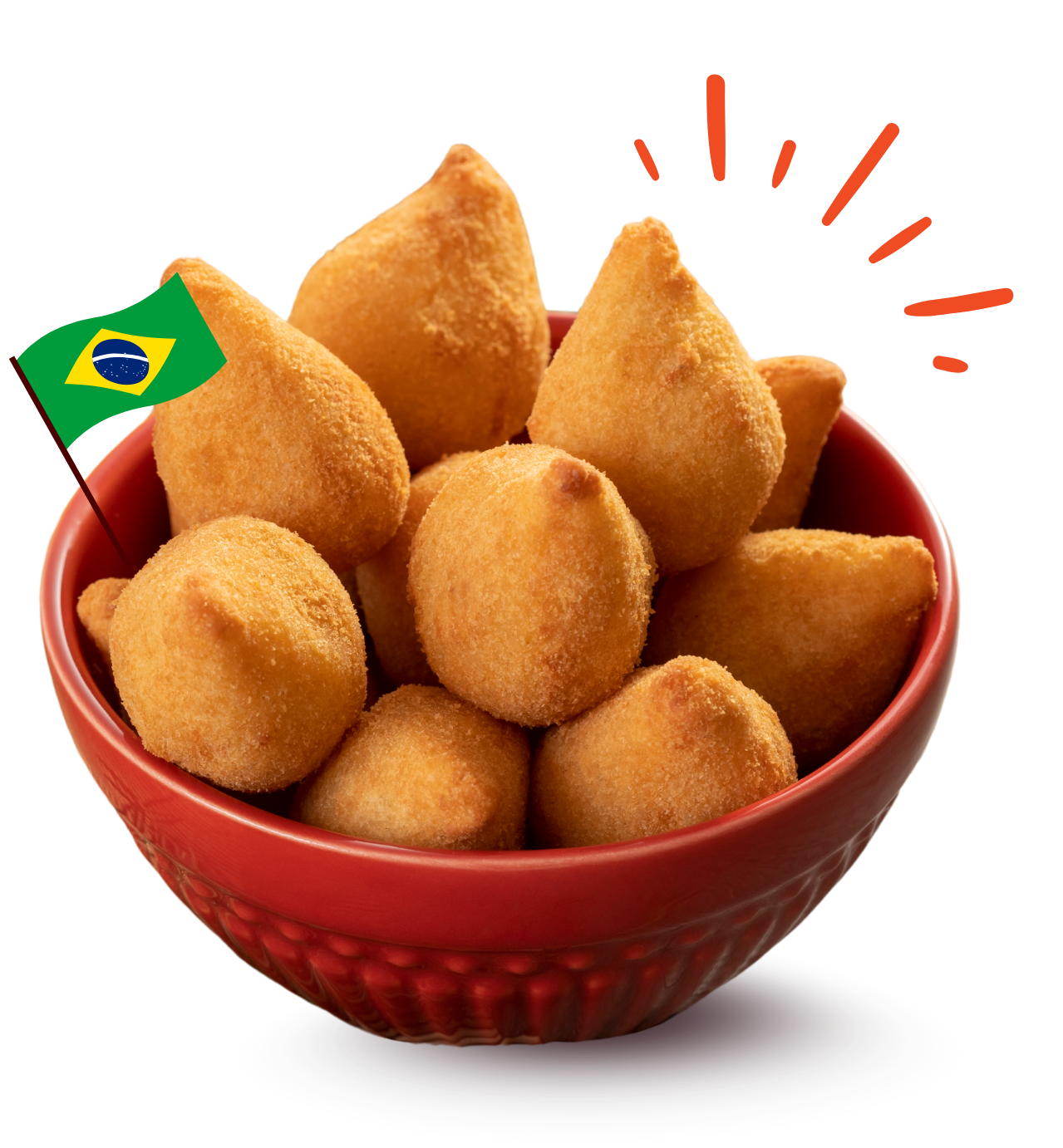 A traditional Brazilian chicken fritter made with shredded chicken and crispy dough.